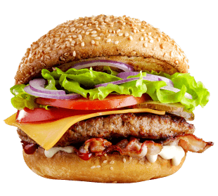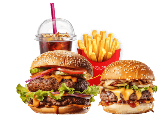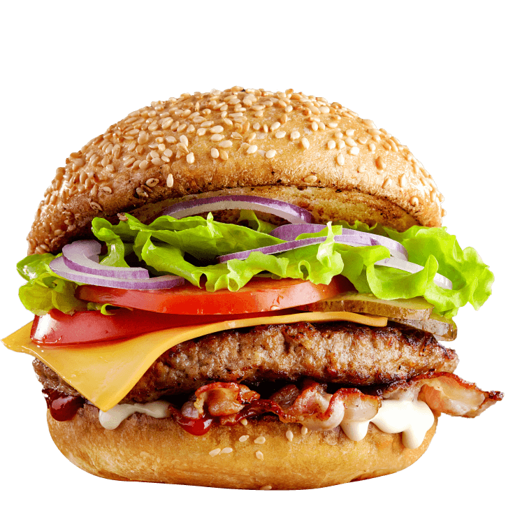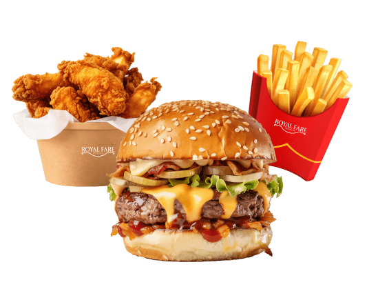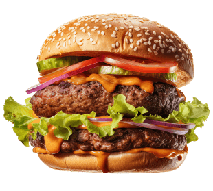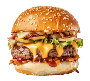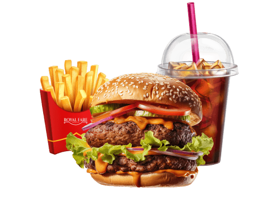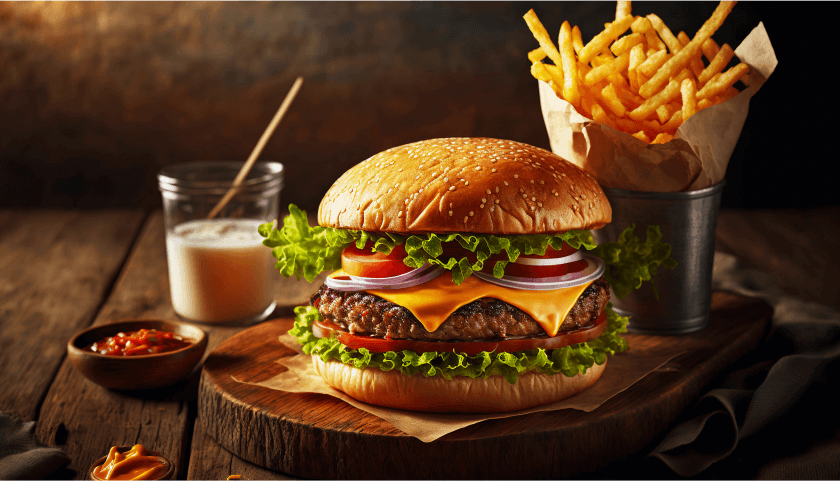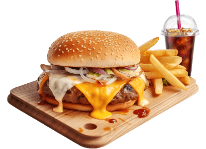 Indulge in a sesame bun burger, crispy French fries, and a tasty milkshake